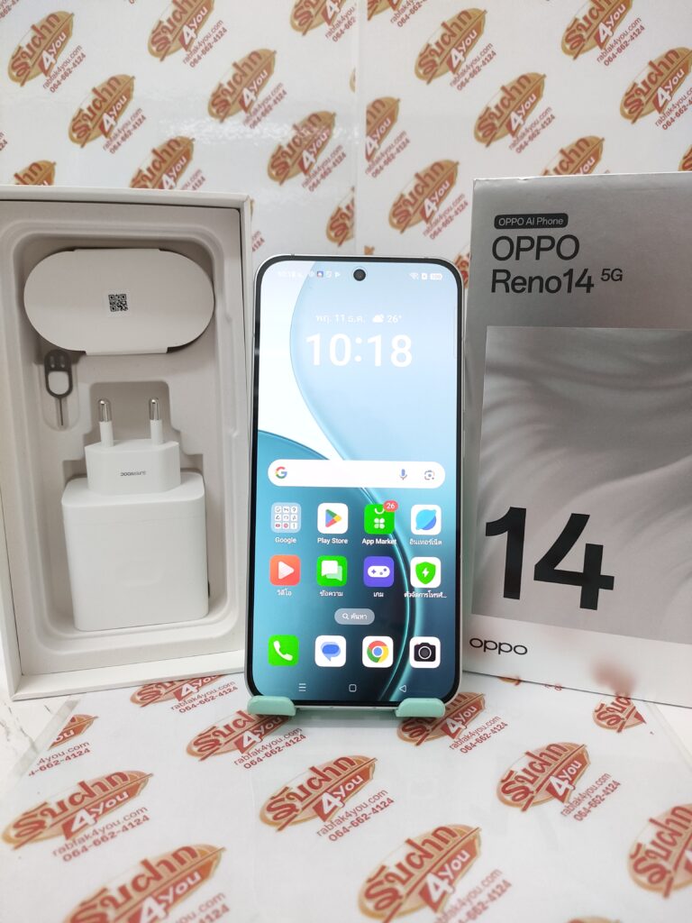 ขายถูก OPPO Reno 14 5G RAM12GB ROM256GB มือ2 สภาพมือ1 จอใหญ่6.59นิ้ว สีขาว อุปกรณ์ครบกล่อง ไม่ติดสัญญารายเดือน ประกันยาวๆ (เครื่อง+จอ) หมดวันที่ 19 สิงหาคม 2569