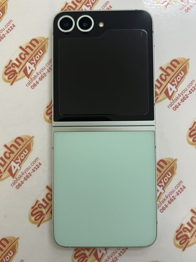 ขายถูกๆ Samsung Z Flip 6 5G Ram12GB Rom256GB สภาพสวย89% ขอบมีรอยนิดหน่อยตามรูป สีGreen อุปกรณ์ไม่มีนะครับ ไม่ติดสัญญา ประกันCare+หมด 24 มิถุนายน 2569