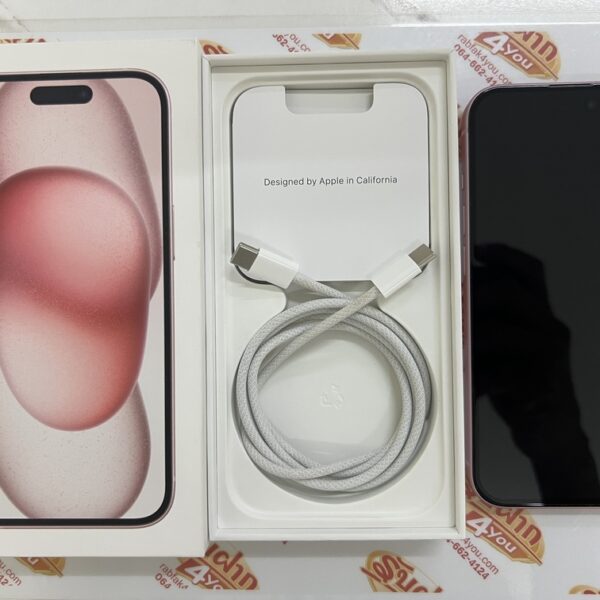 ขายถูก iPhone 15 128GB มือ2สภาพมือ1 สุขภาพแบต100% รอบชาร์จ12 สีPink ศูนย์ไทย อุปกรณ์ครบกล่อง(ขาดเข็ม) ไม่ติดiCloud ประกันหมดวันที่ 30 พฤษภาคม 2569