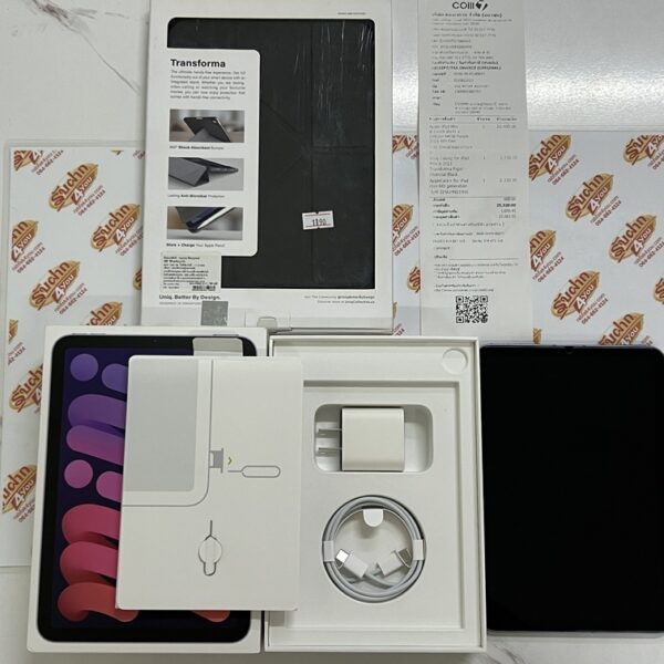 ขายถูกๆ iPad mini 6 Cellular 64GB จอ8.3นิ้ว สุขภาพแบต86% สภาพสวย93% สีม่วง ศูนย์ไทย อุปกรณ์ครบกล่องพร้อมใบเสร็จ แถมเคสให้1อัน ไม่ติดiCloud ประกันหมดแล้ว