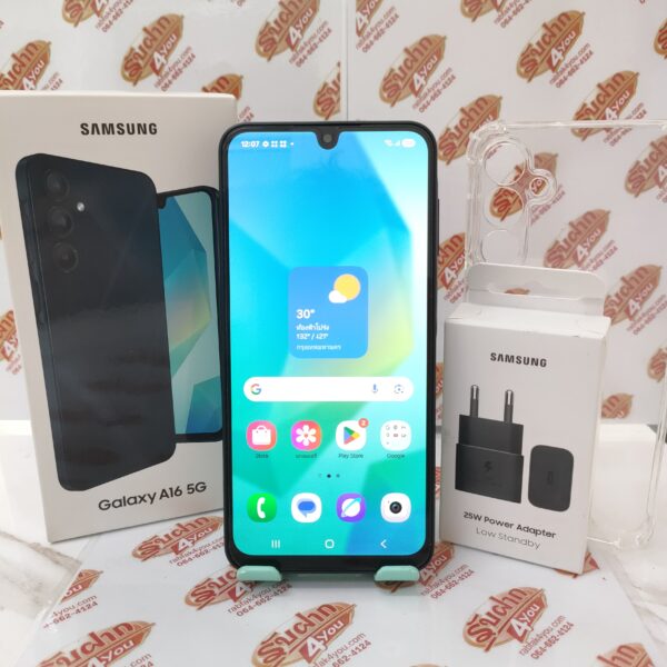ประกาศขายโทรศัพท์มือถือสมาร์ทโฟนเป็นรุ่น Samsung Galaxy A16 5G Ram 4 GB Rom 128 GB จอ6.7นิ้ว สภาพ 98 % เครื่องสีดำ อุปกรณ์ครบกล่อง (สายชาร์จ + เคสใส) ประกันยาว 30 เม.ย 2028