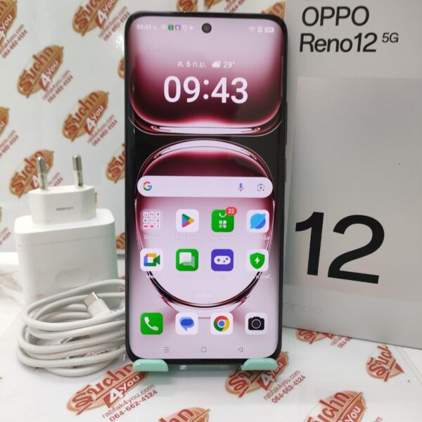 ขายถูก OPPO Reno 12 5G สเปคแรงๆ RAM12GB ROM512GB สภาพสวย98% จอ6.7นิ้ว สีน้ำตาล อุปกรณ์ครบกล่อง ประกันหมด 24 สิงหาคม 69