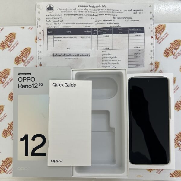 ขายถูก OPPO Reno 12 5G RAM12GB ROM256GB การันตีความใหม่ สีเงิน อุปกรณ์มี ตัวเครื่อง+คู่มือ+กล่อง+ใบเสร็จ ไม่ติดสัญญา ประกันหมด 7 มิถุนายน 2569