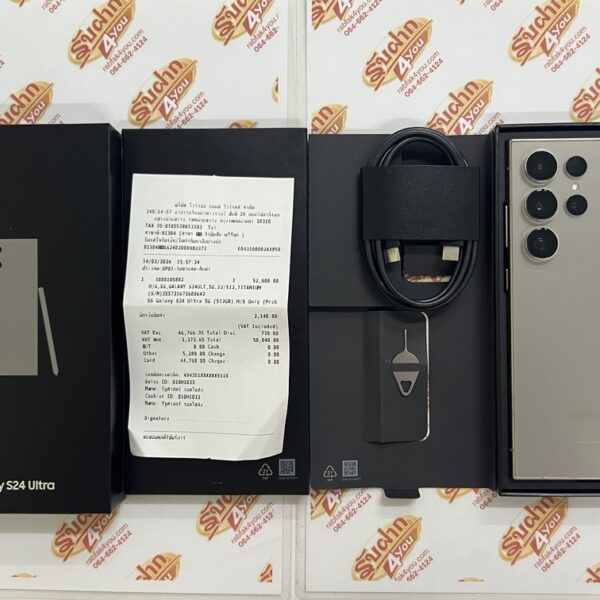 ขายถูก Samsung S24 Ultra 5G RAM12GB ROM512GB(ความจำเยอะ) สีGray สภาพสวย93% อุปกรณ์ครบกล่องพร้อมใบเสร็จ ไม่ติดสัญญา ประกันหมดแล้ว