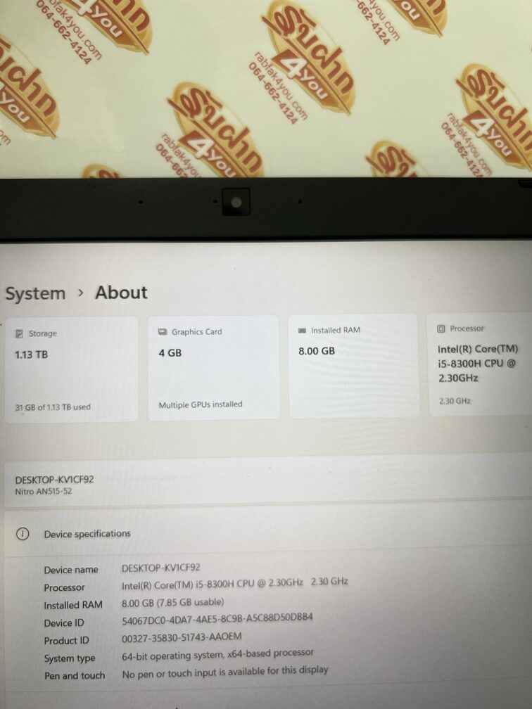 รายละเอียด | ประกาศขายโน๊ตบุ๊คเกมมิ่ง คีย์บอร์ดมีไฟ เป็นรุ่น ACER Nitro 5 AN515-52-51SH CPU Intel Core i5-8300H/NVIDIA GeForce GTX 1050Ti 4GB/RAM8GB/SSD240GB + HDD1TB จอ15.6นิ้ว (1920×1080) Full HD คีย์บอร์ดมีไฟ เครื่องสีBlack สภาพ89% จอมีรอยโดนแนวคีย์บอร์ดทับ ปุ่มWindowกับปุ่มHomeกดไม่ได้นะครับ Adapterสายไฟพันหุ้มสายมานะครับ อุปกรณ์มี ตัวเครื่อง+สายชาร์จ รีเซ็ตWindowsให้ใหม่แล้วพร้อมใช้งานได้ทันที ประกันหมดแล้วแต่ใช้งานได้100% |