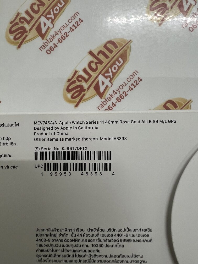 ขายถูก Apple Watch Series 11 GPS 46มม Rose Gold การันตีความใหม่ สุขภาพแบต100% ศูนย์ไทย อุปกรณ์ครบกล่องพร้อมใบเสร็จ ไม่ติดiCloud ประกันหมด 25 ตุลาคม 2569