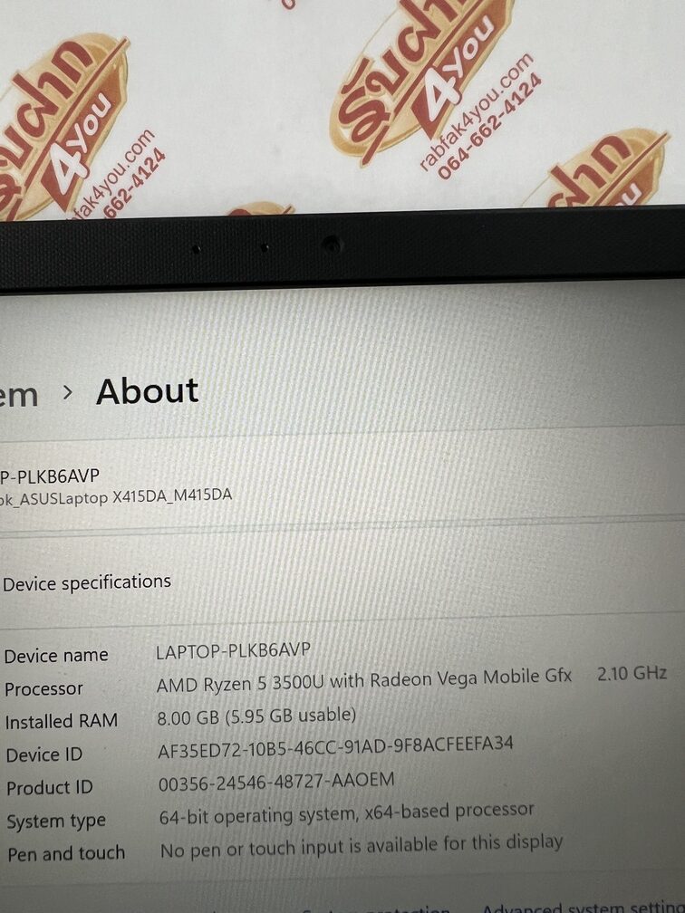 ประกาศขายโน้ตบุ๊คเป็นรุ่น ASUS M415DA-EB501W CPU AMD Ryzen 5 3500U Ram8GB SSD512GB จอ14นิ้ว...