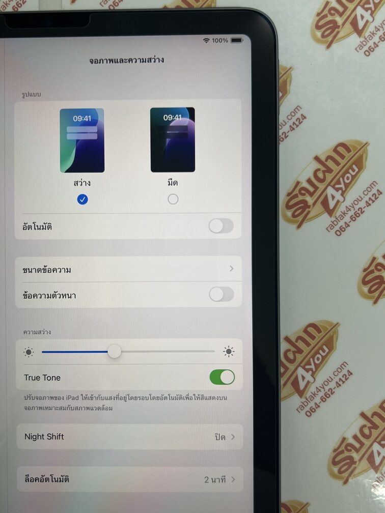 รายละเอียด | ประกาศขายแท็บเล็ตจากค่ายดังฝั่ง Apple เป็นรุ่น iPad Air (5th generation) WiFi ใส่ซิมไม่ได้ครับ หน่วยความจำตัวเครื่อง64GB หน้าจอ Retina 10.9 นิ้ว สภาพสวย92% สุขภาพแบต79% สีSpace gray เครื่องศูนย์ไทย อุปกรณ์ครบกล่องมี ตัวเครื่อง+หัวชาร์จ+สายชาร์จ+คู่มือ+กล่อง หน้าจอติดฟิล์มให้แล้วครับ รีเซ็ตเครื่องให้ใหม่แล้วพร้อมใช้งานได้ทันที ไม่ติดiCloud ประกันหมดแล้วครับ |