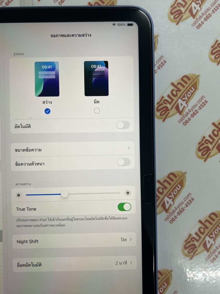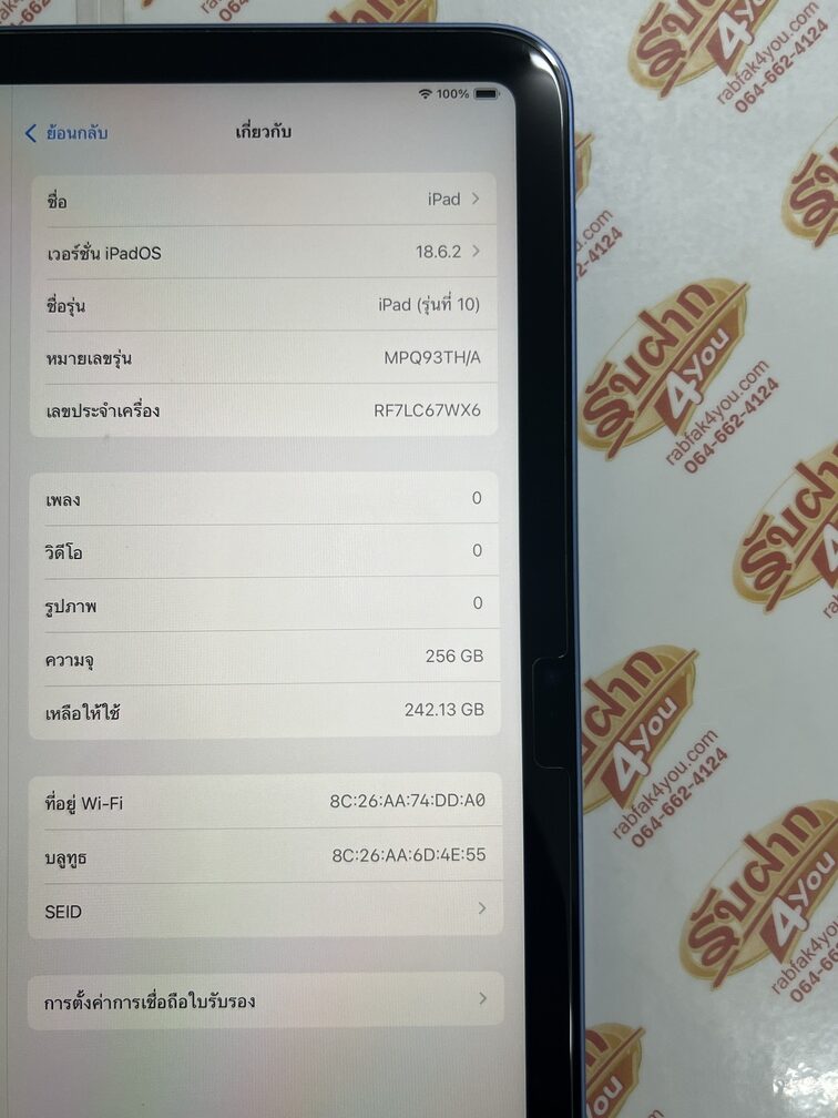 | รายละเอียด | ประกาศขายแท็บเลตจากค่ายดังของ Apple เป็นรุ่น iPad Gen 10 WiFi (ใส่ซิมไม่ได้) หน่วยความจำตัวเครื่อง256GB(ความจำเยอะ) จอใหญ่10.9นิ้ว สภาพสวย92% มีรอยขนแมวนิดหน่อยมองแทบไม่เห็นโดยรวมแล้วสวย สุขภาพแบต87% สีBlue เครื่องศูนย์ไทย อุปกรณ์ไม่มีนะครับ มีแต่ตัวเครื่อง ติดฟิล์มหน้าจอให้แล้วครับ resetเครื่องให้ใหม่แล้วพร้อมใช้งานได้ทันที ไม่ติดiCloud ประกันหมดแล้วแต่ใช้งานได้100% |