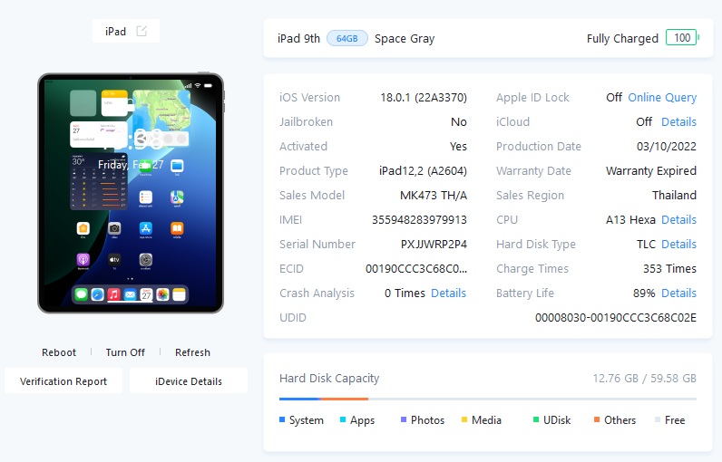 ขายถูก iPad Gen 9 Cell ใส่ซิมได้ 64GB สภาพสวย93% สุขภาพแบต89% สีSpace gray ศูนย์ไทย อุปกรณ์ไม่มีนะครับ มีแต่ตัวเครื่อง ไม่ติดiCloud ประกันหมดแล้ว