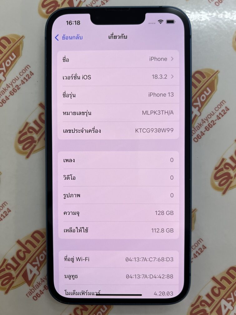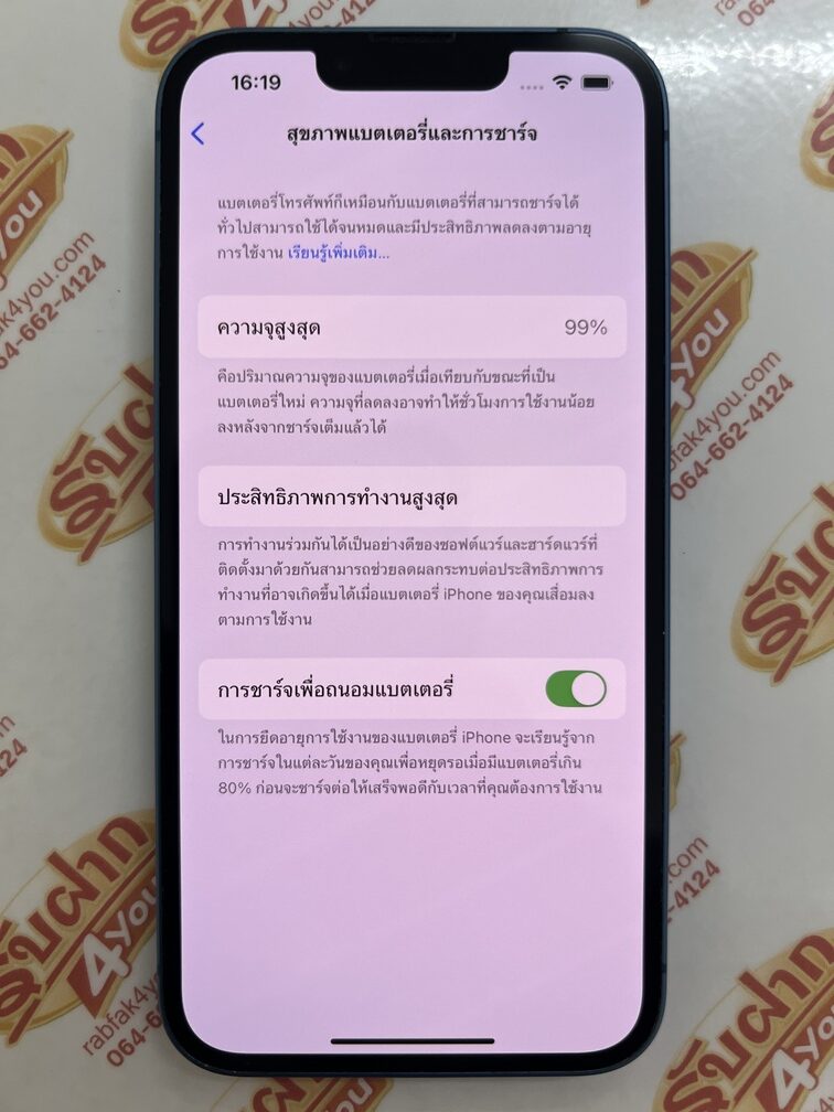 ขายถูก iPhone 13 128GB สภาพสวย92% มีรอยขนแมวนิดหน่อยโดยรวมแล้วสวย สุขภาพแบต99%(ใช้น้อยมาก) สีBlue ศูนย์ไทย อุปกรณ์ไม่มีนะครับ ไม่ติดiCloud ประกันหมดหมดแล้ว