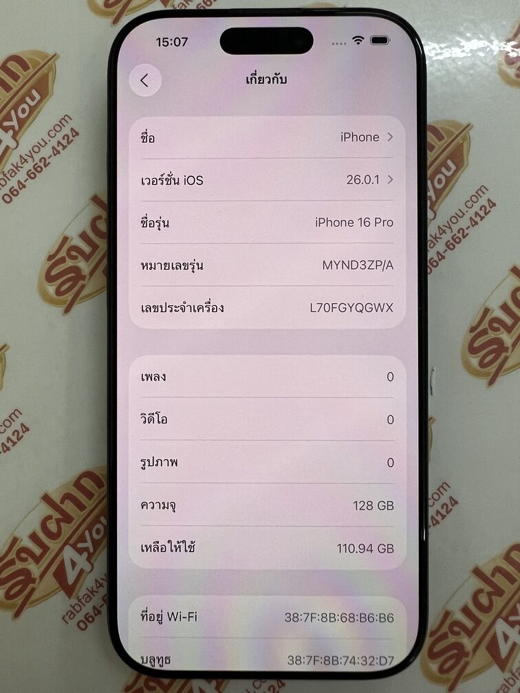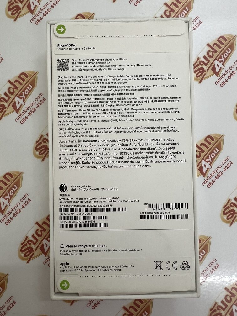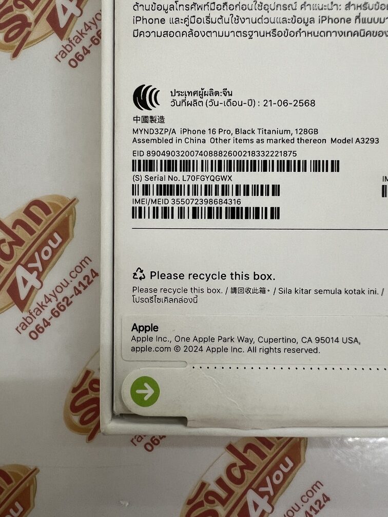 ประกาศขายโทรศัพท์มือถือสมาร์ทโฟน จากค่ายดังฝั่ง Apple เป็นรุ่น iPhone 16 Pro (เป็นตัวโปร กล้องหลัง3ตัว) หน่วยความจำตัวเครื่อง128GB จอใหญ่6.3นิ้ว...