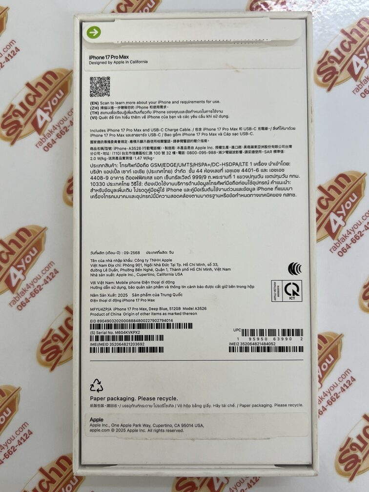ประกาศขายโทรศัพท์มือถือสมาร์ทโฟน จากค่ายดังฝั่ง Apple เป็นรุ่น iPhone 17 Pro Max (เป็นตัวโปร กล้องหลัง3ตัว) หน่วยความจำตัวเครื่อง512GB(ความจำเยอะ)...