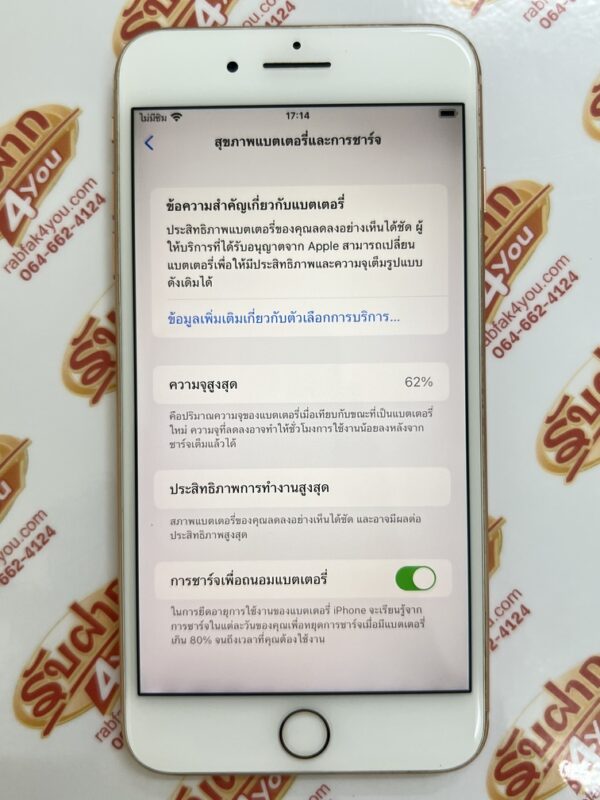 | รายละเอียด | ประกาศขายโทรศัพท์มือถือสมาร์ทโฟนจากค่ายดังของ Apple เป็นรุ่น iPhone 8 Plus 64GB สภาพสวย90% สุขภาพแบต62%(แบตเสื่อม) กล้องหลังเวลาถ่ายรูปมีดวงเล็กๆ1ดวง จอแท้ปรับTrue Toneได้ เครื่องสีGold เครื่องศูนย์ไทย อุปกรณ์ไม่มีนะครับ มีแต่ตัวเครื่อง รีเซ็ตเครื่องให้ใหม่แล้วพร้อมใช้งานได้ทันที ไม่ติดiCloud ประกันหมดแล้วนะครับแต่ใช้งานได้100% |