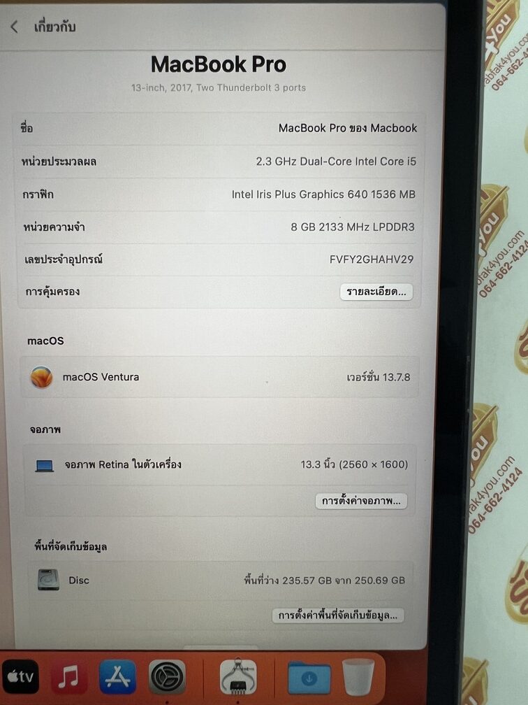 ประกาศขาย Macbook ตัวPro ปี2017 มีทัศบาร์ จอ13.3นิ้ว รุ่น MacBook Pro (13-inch, 2017,...