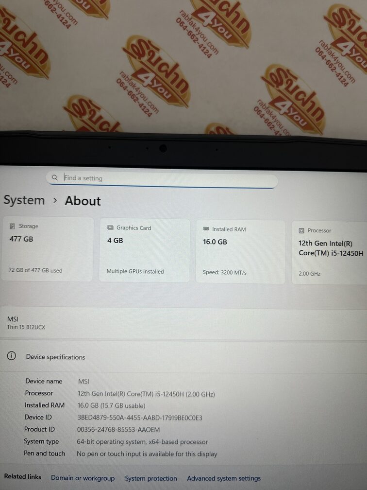 ประกาศขายโน๊ตบุ๊ค สเปคแรงๆ เป็นรุ่น MSI Thin 15 B12UCX-1428TH CPU Intel Core i5-12450H/Nvidia...