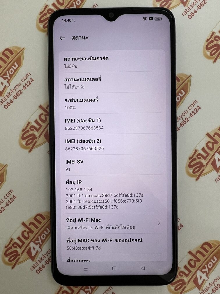 รายละเอียด | ประกาศขายโทรศัพท์มือถือสมาร์ทโฟนเป็นรุ่น OPPO A18 Ram4GB Rom64GB จอ6.56นิ้ว สภาพสวย92% มีรอยขนแมวนิดหน่อยมองแทบไม่เห็นโดยรวมแล้วสวยมีรอยขนแมวนิดหน่อยมองแทบไม่เห็นโดยรวมแล้วสวย สีดำ โกลวอิ้ง อุปกรณ์ไม่มีนะครับ มีแต่ตัวเครื่อง resetเครื่องให้ใหม่แล้วพร้อมใช้งานได้ทันที ไม่ติดAccount Gmail ไม่ติดสัญญารายเดือน ประกันหมดแล้วแต่ใช้งานได้100% |