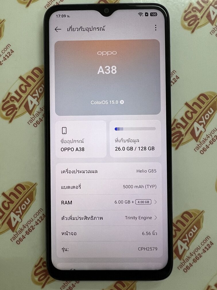 ประกาศขายโทรศัพท์มือถือสมาร์ทโฟนเป็นรุ่น OPPO A38 Ram6GB Rom128GB(ตัวท๊อป) จอ6.56นิ้ว สภาพสวย90% มีรอยขนแมวนิดหน่อยมองแทบไม่เห็น เครื่องสีดำ โกลวอิ้ง อุปกรณ์มี...