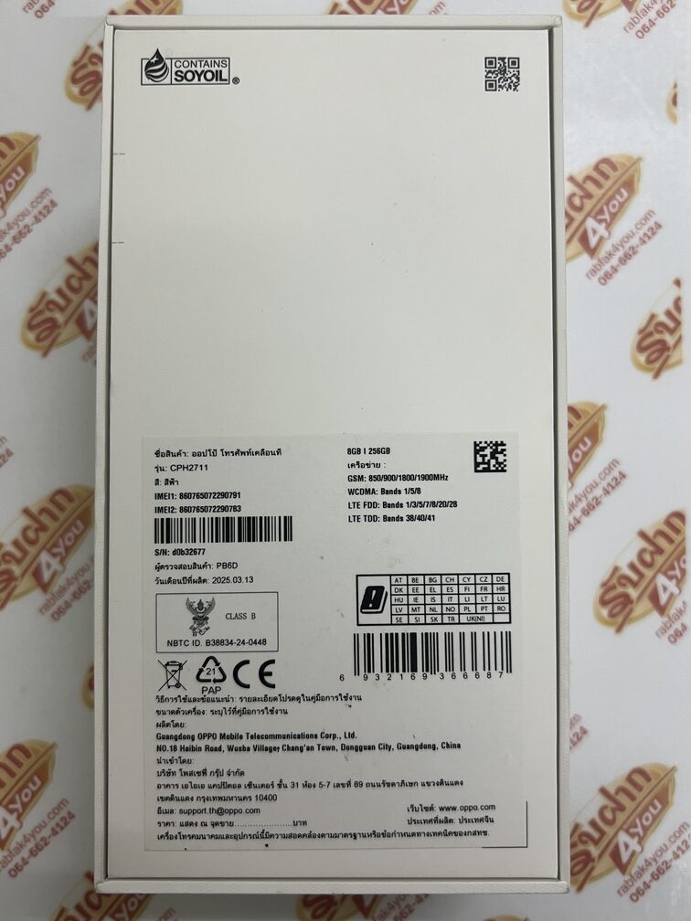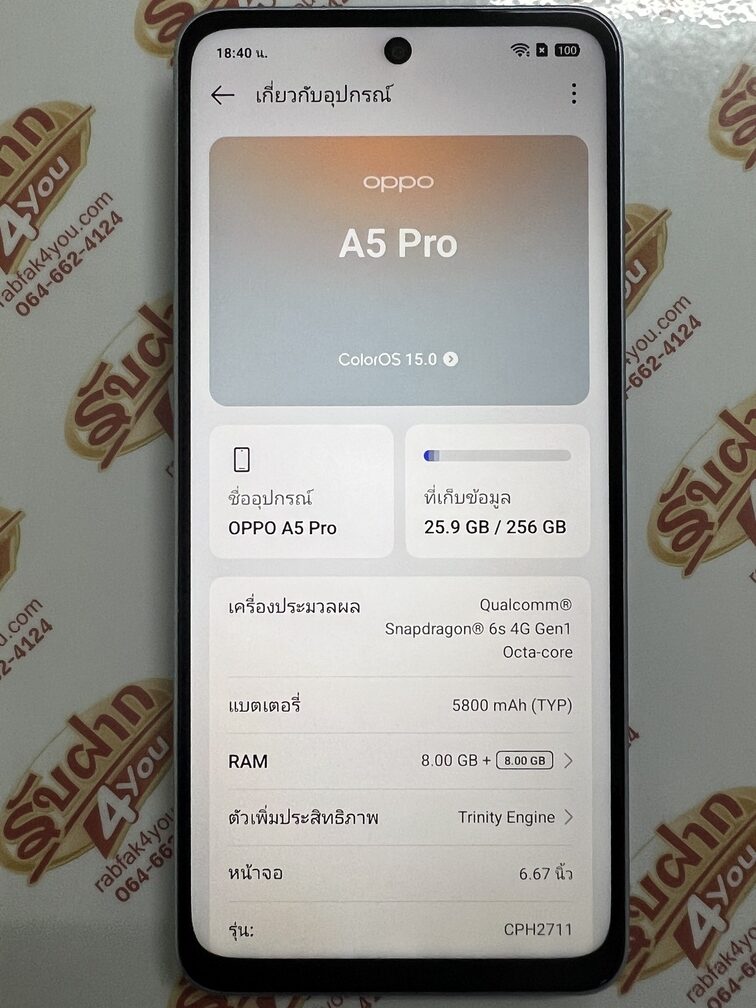 ประกาศขายโทรศัพท์มือถือสมาร์ทโฟน เป็นรุ่น OPPO A3 Ram 8 GB Rom 128 GB จอใหญ่ 6.67 นิ้ว สภาพสวย 89 % มีรอยตามการใช้งาน  เครื่องสีStarlight...