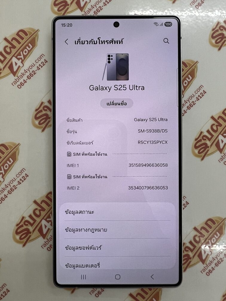 | รายละเอียด | ประกาศขายโทรศัพท์มือถือสมาร์ทโฟนจากค่ายดังฝั่ง Android เป็นรุ่น Samsung Galaxy S25 Ultra 5G (SM-S938B/DS) RAM12GB ROM256GB จอ6.9นิ้ว เครื่องสีTitanium Silver Blue สภาพสวย95% การันตีความใหม่ อุปกรณ์ครบกล่องมี ตัวเครื่อง+สายชาร์จ+เข็ม+คู่มือ+กล่อง ติดฟิล์มกันรอยหน้าจอให้แล้วครับ รีเซ็ตเครื่องให้ใหม่แล้วพร้อมใช้งานได้ทันที ไม่ติดAccount Gmail ไม่ติดสัญญารายเดือน ประกันยาวๆหมดวันที่ 23 สิงหาคม 2569 |