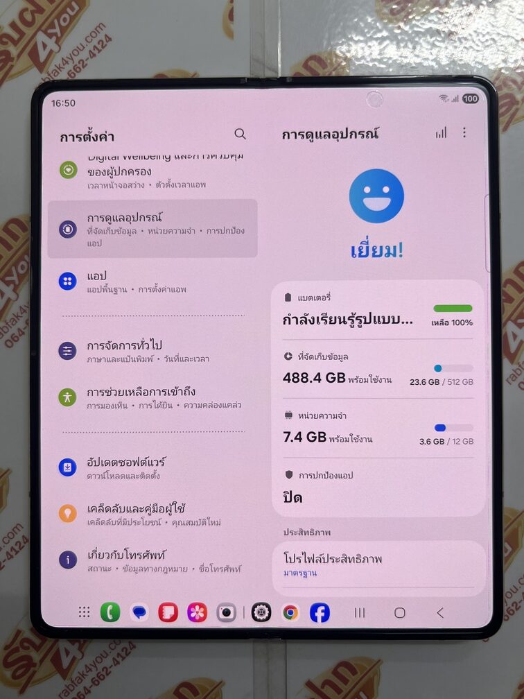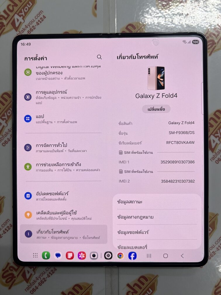 ขายถูกๆ Samsung Z Fold 4 5G RAM12GB ROM512GB(ความจำเยอะ) 6.7นิ้ว สภาพสวย90% สีBeige อุปกรณ์ไม่มีนะครับ ไม่ติดสัญญารายเดือน ประกันหมดแล้วครับ