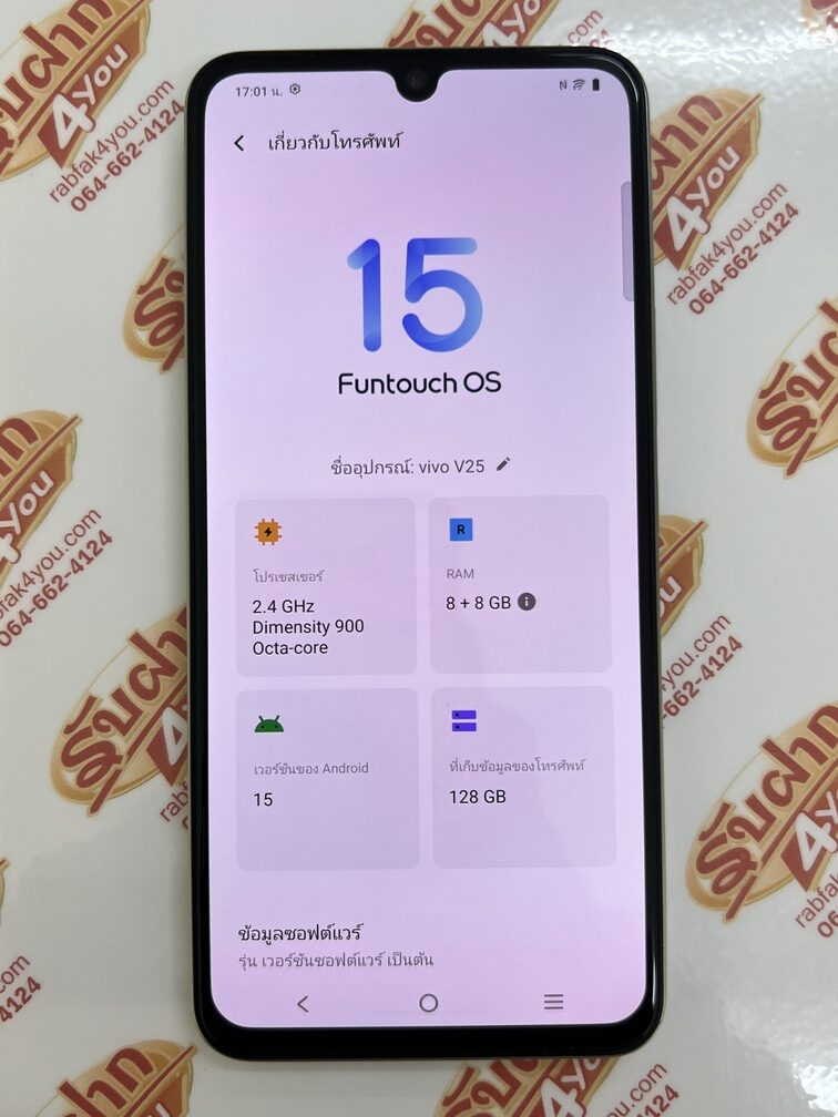 ขายถูก Vivo V25 5G Ram8GB Rom128GB สภาพสวย88% ขอบมีรอยนิดหน่อยตามการใช้งานโดยรวมแล้วสวยครับ สีSunrise Gold อุปกรณ์ไม่มีนะครับ ไม่ติดสัญญ ประกันหมดแล้ว