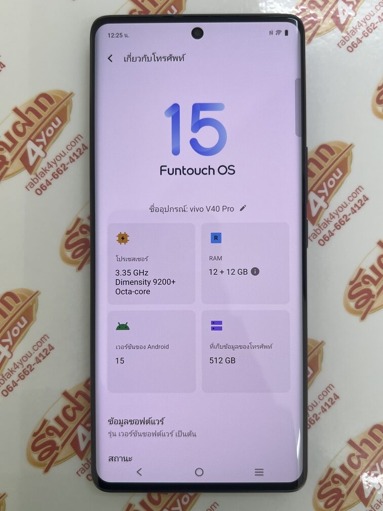 ขายถูก Vivo V40 Pro 5G RAM12GB ROM512GB 6.78นิ้ว สีSilver สภาพสวย93% ศูนย์ไทย อุปกรณ์ไม่มีนะครับ ไม่ติดสัญญา ประกันหมดวันที่ 29 กันยายน 2568