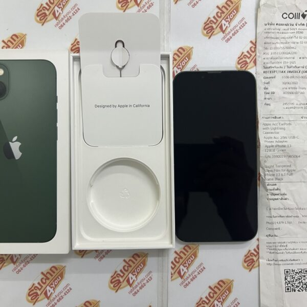 ขายถูก iPhone 13 128GB สภาพสวย92% สุขภาพแบต96% เครื่องสีเขียว เครื่องศูนย์ไทย อุปกรณ์มี ตัวเครื่อง+เข็ม+คู่มือ+กล่อง+ใบเสร็จ ประกันหมดแล้ว
